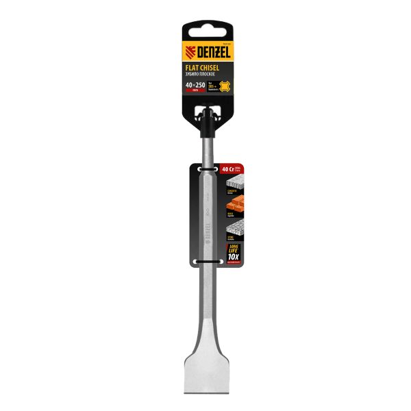 Зубило Denzel 703130 размером 14 x 40 x 250 мм, из стали 40Cr, с хвостовиком SDS-plus — оснастка для перфоратора. Предназначено для выполнения ударных, демонтажных работ с твердыми материалами, такими как камень, бетон, кирпич. Пригодится на строительной площадке.